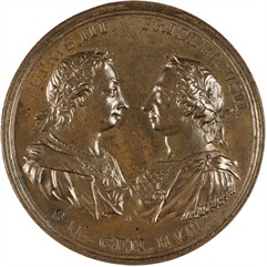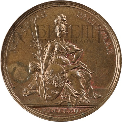 Гравер А. Абрамсон, Берлинский королевский монетный двор. 1762 г.Диаметр 43 мм. Вес 29,33 г. Бронза. Дьяков 113.1Состояние превосходное.
