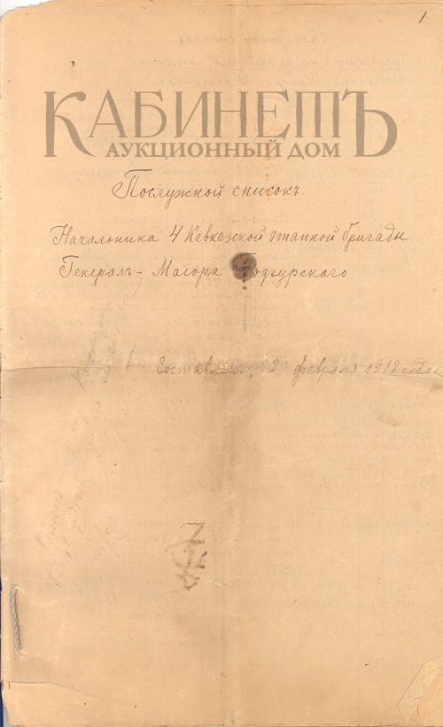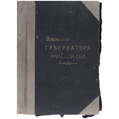 Лот из 13 предметов. Архив семьи А.Д. Подгурского, исполняющего обязанности Военного Губернатора Карской области в папке для официальных документов с тесненной золотом надписью: «Военнаго ГУБЕРНАТОРА Карской обл.» (1.-13.)