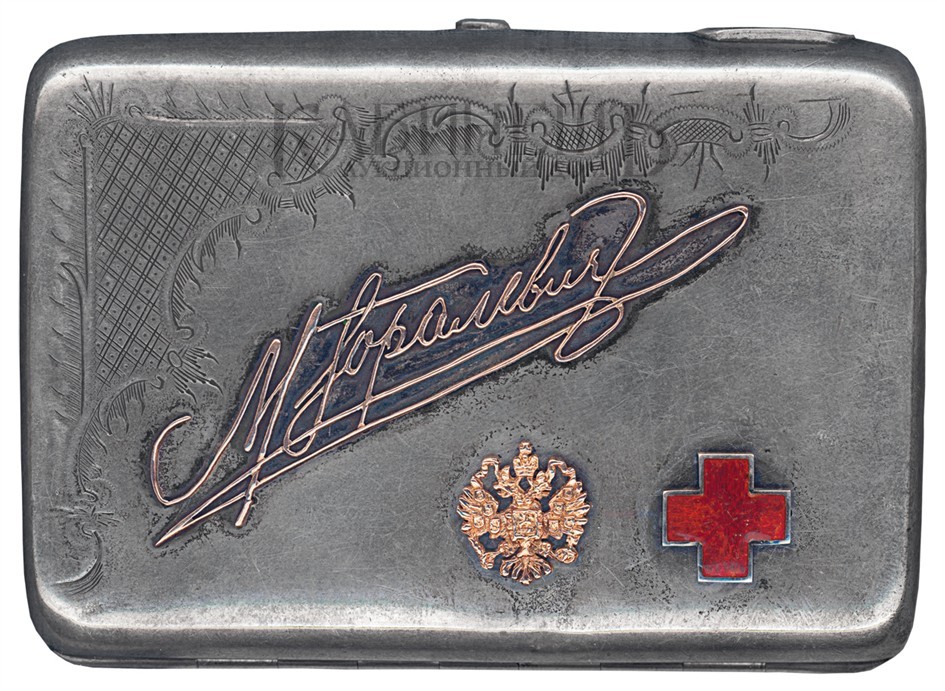 Портсигар с накладным знаком Красного Креста и государственным гербом Российской Империи