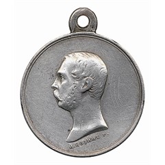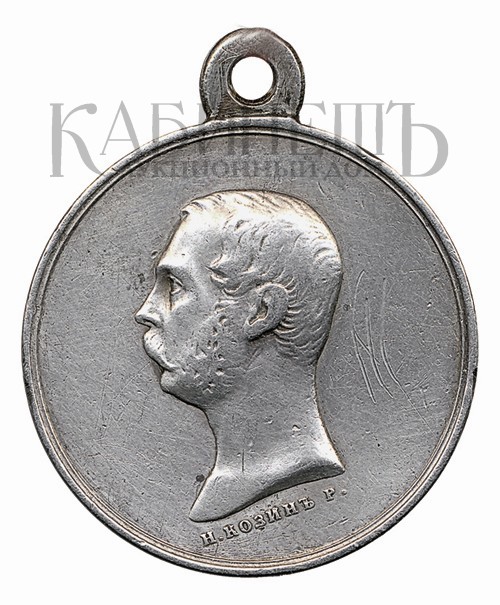 Гравер: Н. Козин, Санкт-Петербургский монетный двор. 1864–1867 гг.Диаметр 28 мм. Серебро, муар.Дьяков 720.3; Петерс 143; Биткин 972. Б.вар. 1.