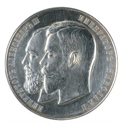 Санкт-Петербургский монетный двор. Конец XIX – начало XX вв.Диаметр 51 мм, вес 60,98 г. Серебро. Дьяков 1160.2; Смирнов 1339/b.