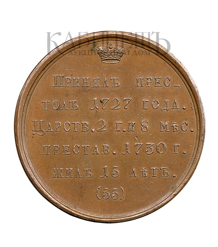Медаль «Император Петр II. 1727–1730 гг.» из портретной серии медалей с изображениями Великих князей, царей, Императриц и Императоров Российских