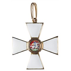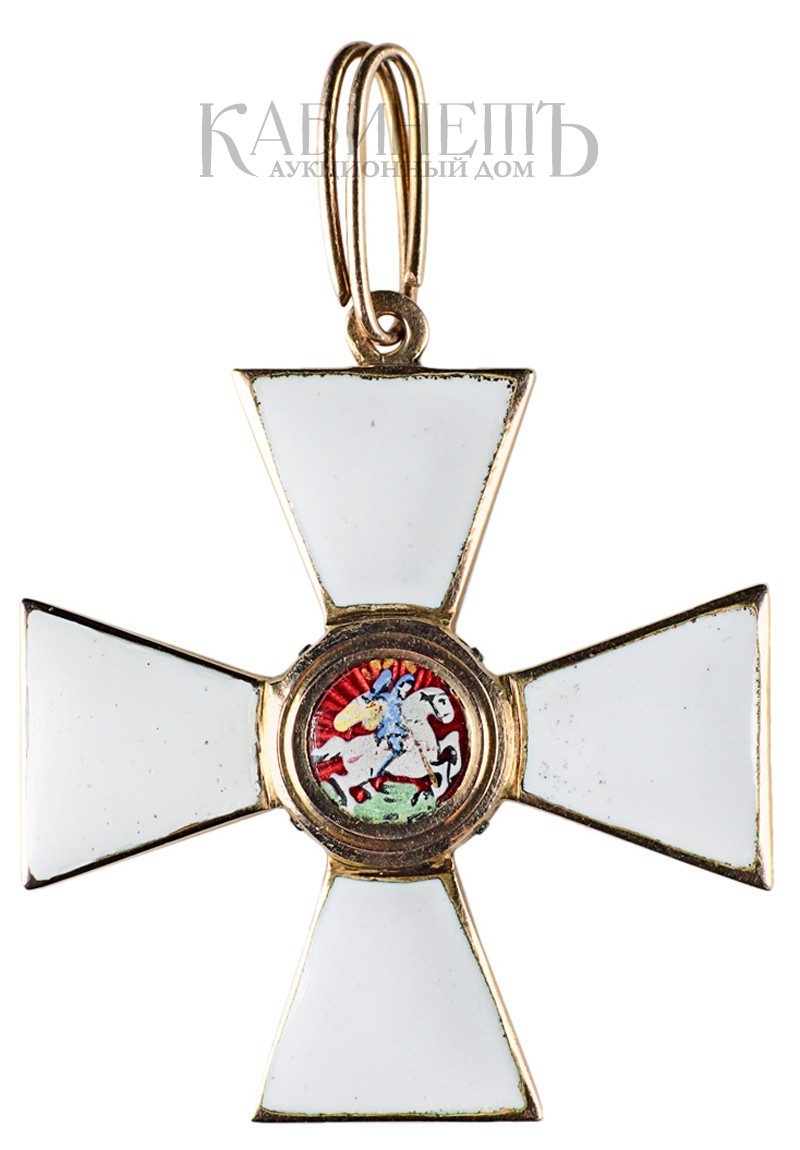 Клейма: на ушке с оборотной стороны – пробирное «56» с женской головкой в кокошнике, повернутой вправо, плохо читаемый именник; на барабане и подвесном кольце — знаки удостоверения. На обороте на верхнем луче частично утрачена эмаль, реставрация эмали левого горизонтального луча с лицевой стороны.