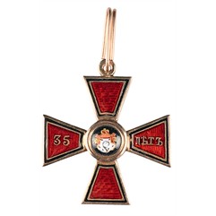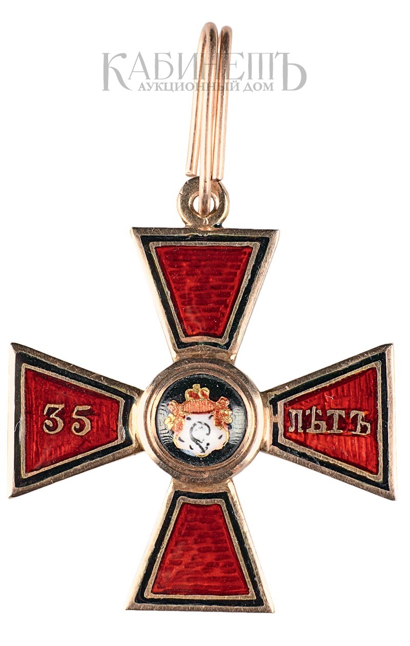 Согласно пункту XIV Статута ордена Святого Владимира, в редакции 1845 г., право на получение ордена Святого Владимира 4-й степени с надписью «35 летъ» приобретали чиновники, «прослужившие беспорочно тридцать пять лет в Российской Империи, Царстве Польском и Великом княжестве Финляндском, а в Закавказском крае 25 лет, по ведомствам Гражданскому, Военному или Морскому, считая от получения первого классного чина, или должности, а по ведомствам ученому, художе- ственному и медицинскому от поступления в одно из Академических званий, когда оно соединено с действительной службой». В начале XX в. количество награжденных подобным знаком составляло около 400 человек ежегодно. Например, в 1903 г. было награждено 452 человека, в 1904 г. – 419, в 1905 г. – 429.