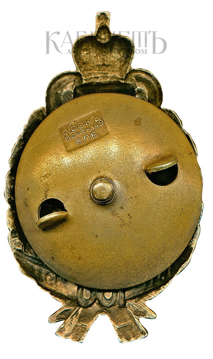 Российская Империя, частная мастерская. 1910-е гг. Размер 54 х 34 мм. Вес 22,64 г.Патрикеев, Бойнович III 4.2.149.Эмаль на знаке добавлена позднее.Довольно редкий.