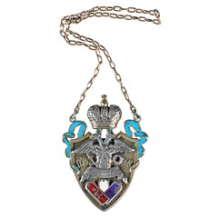 Клейма: на обротной стороне – пробирное для маломерных изделий из драгоценных металлов «84» с инициалами пробирного инспектора «ЯЛ». На лицевой стороне выгравирована фамилия: «Урбанович». Селиванов НЗиЖ 79.