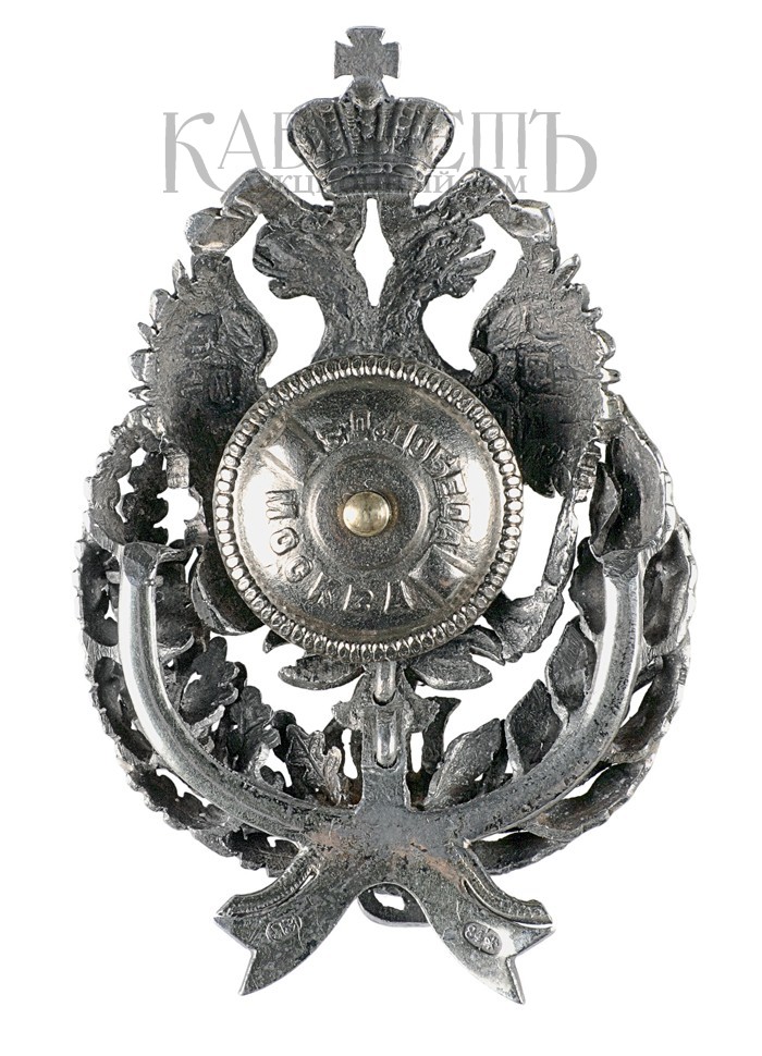 Клейма: на оборотной стороне на лентах венка - пробирное «84» с гербом Санкт-Петербурга; именник «Л.Э».