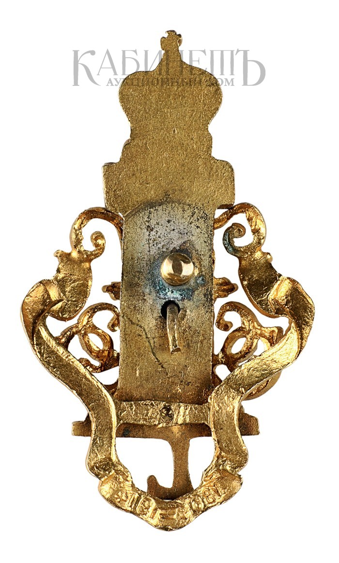Российская Империя, частная мастерская. 1911 г. Размер 54,5 х 32 мм. Вес 18,76 г. Бронза, позолота. Патрикеев, Бойнович. I. 4.31. Без закрутки.