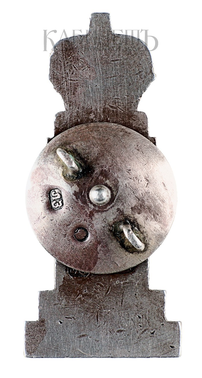 Клейма: на оборотной стороне – пробирное Одесского пробирного управления «84», с женской головкой в кокошнике, повернутой вправо, именник «ЛЗ»; на закрутке знак удостоверения, именник «ЛЗ».