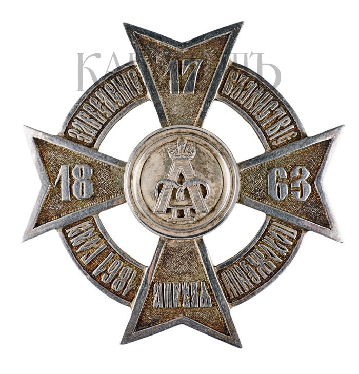 Знак вручался лицам, заслужившим поощрение за внедрение Положения о крестьянах, вышедших из крепостной зависимости.