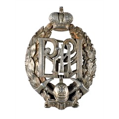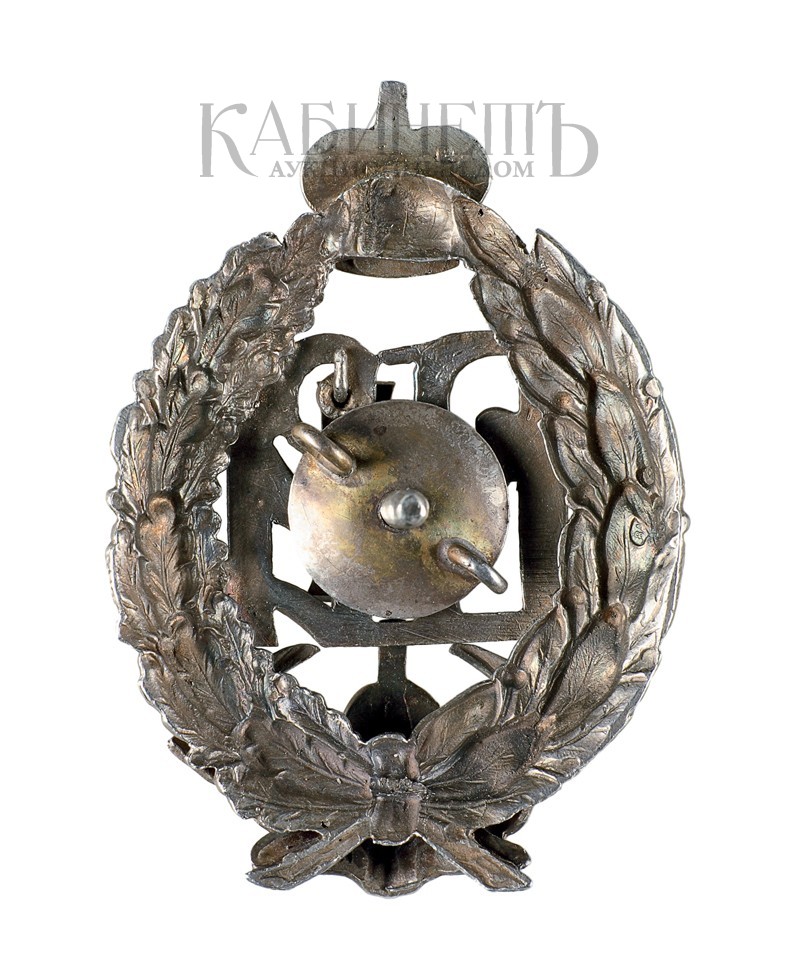 Клейма: на оборотной стороне, на венке справа - пробирное Санкт-Петербургского пробирного управления «84» с женской головкой в кокошнике, повернутой вправо; знак удостоверения; именник «ВД»; на короне именник - «ВД».