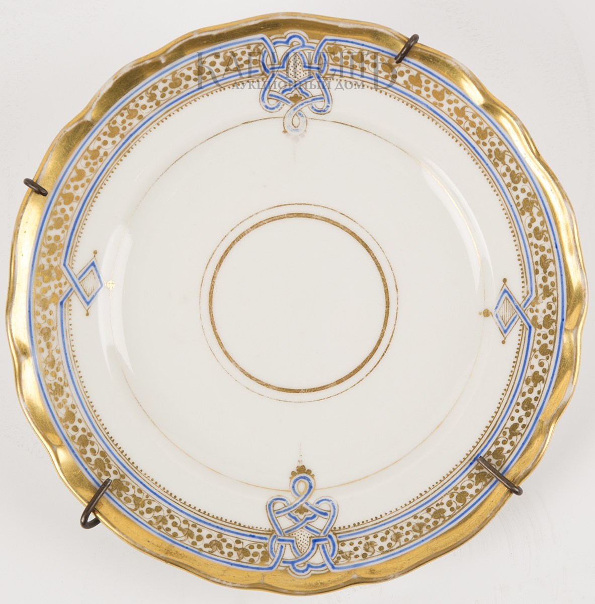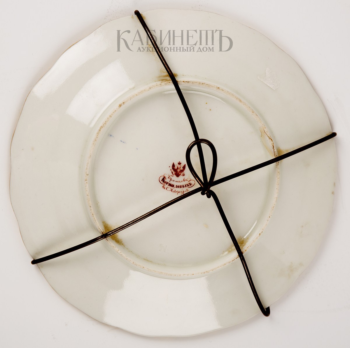 Фарфор, надглазурная роспись, золочениеМарки: коричневая марка завода под императорским орлом.