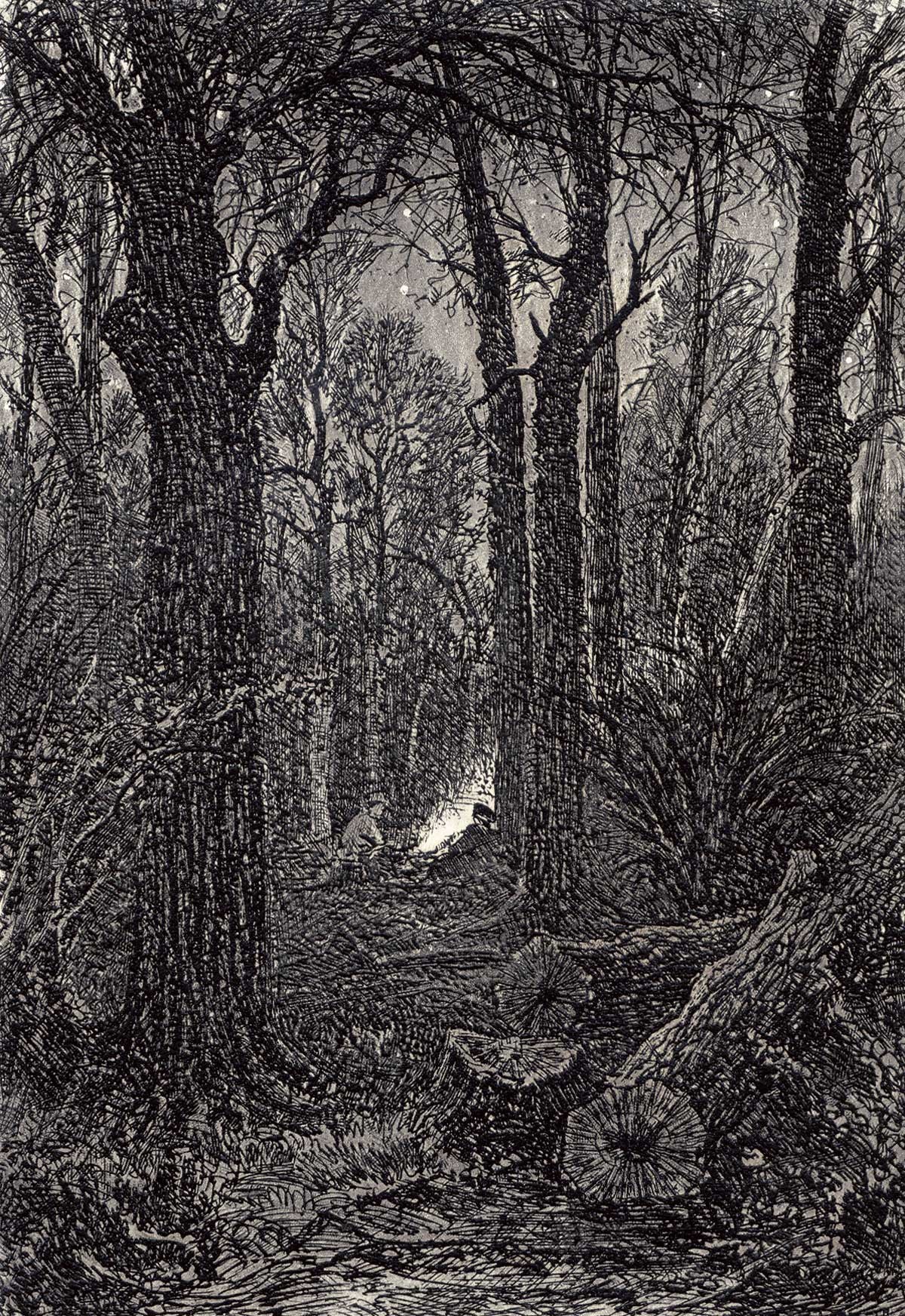 Офорт вошел в альбом «60 офортов И.И.Шишкина», изданный Товариществом А.Ф.Маркса (СПб., 1894), под названием «На порубке».