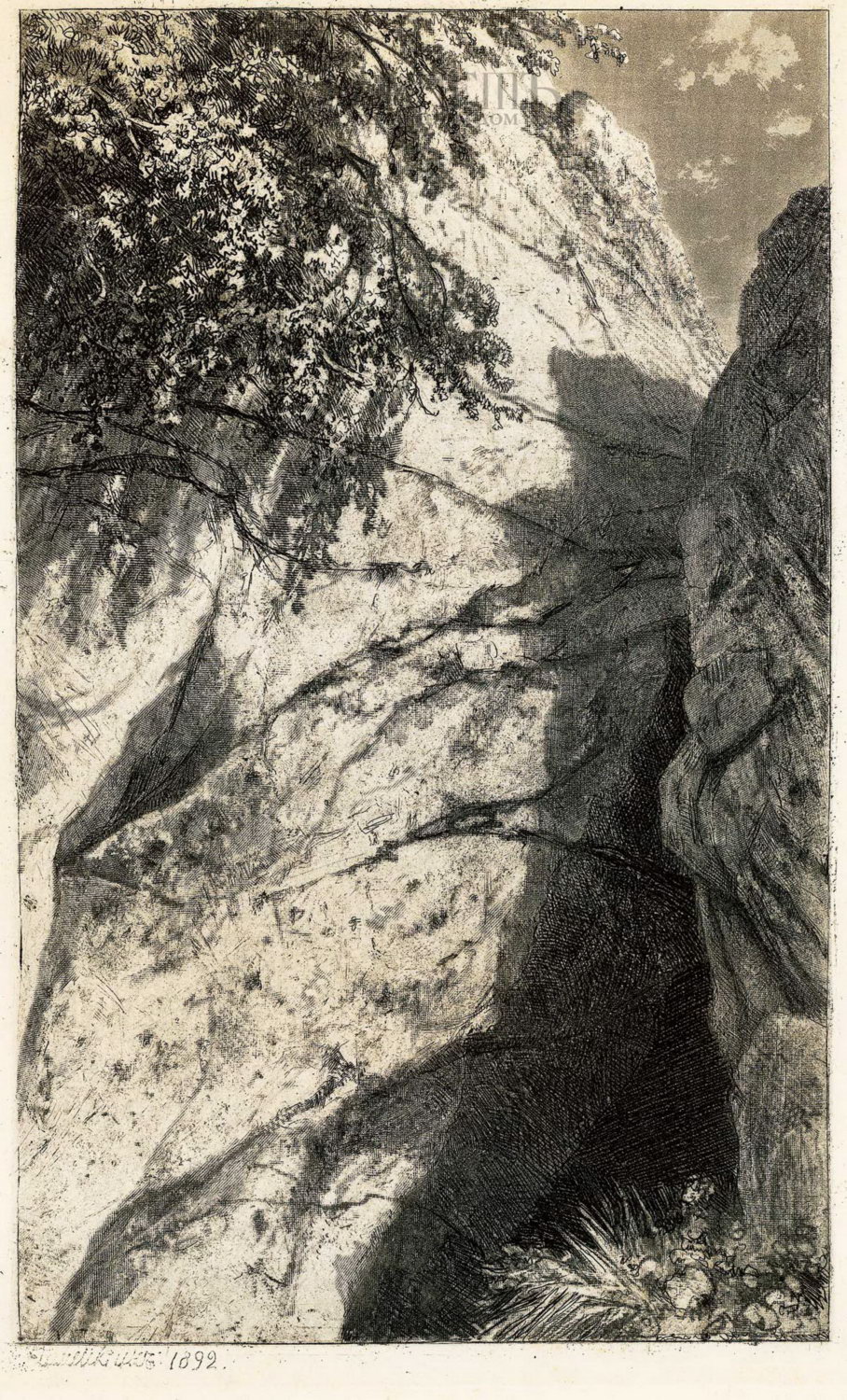 Офорт вошел в альбом «60 офортов И.И.Шишкина», изданный Товариществом А.Ф.Маркса (СПб., 1894), под названием «Скала».