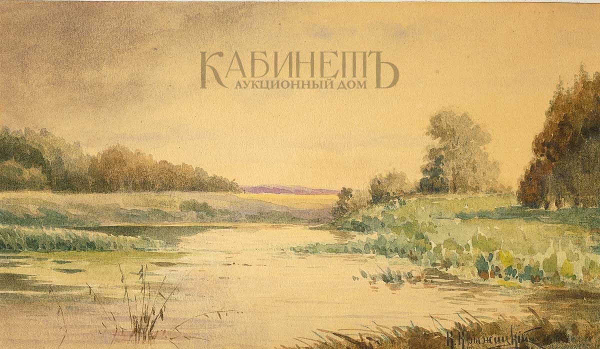 Крыжицкий Константин Яковлевич (1858-1911) – живописец-пейзажист. Учился в Киеве, в Рисовальной школе Н.И. Мурашко, в ИАХ (1877-1885) у М. Клодта. Участвовал в весенних выставках ИАХ. Академик ИАХ с 1889 г. С 1900 г. действительный член ИАХ. Участвовал в выставках Общества выставок художественных произведений (1876-1883), Общества русских акварелистов (1880). Был членом-учредителем Санкт-Петербургского Общества художников и действительным членом и экспонентом ТПХВ. Один из организаторов и председатель (с 1908) Общества художников им. А.И. Куинджи. С 1909 по 1910 гг. состоял в Санкт-Петербургском обществе «Мюссаровские понедельники». В его память в 1912 г. было организовано Общество имени К.Я. Крыжицкого, существовавшее до 1917 г.
