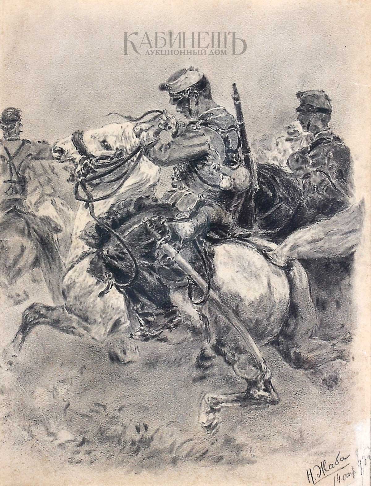 На обороте внизу графитным карандашом надпись: «Батальная композиция/ 1893 г.».