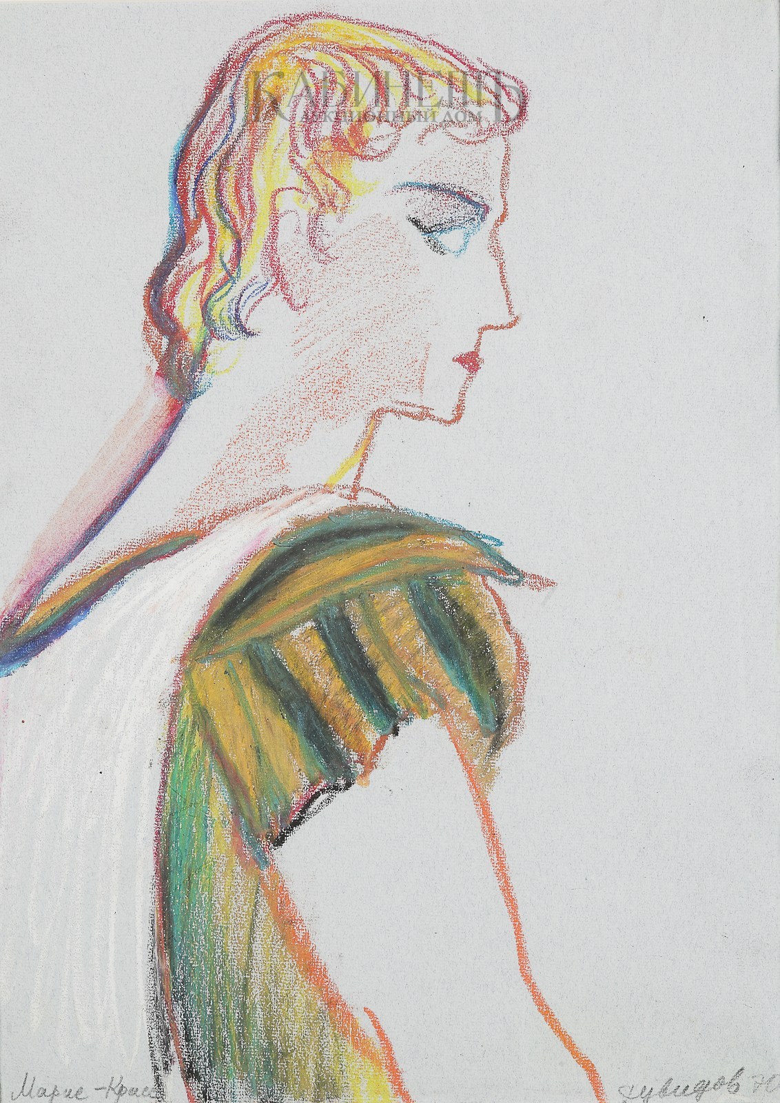 На обороте карандашом: «Дувидов Виктор Аронович 1932 – 2000г// «Марис Лиепа в роли Красса» 1970 г// масляная пастель».