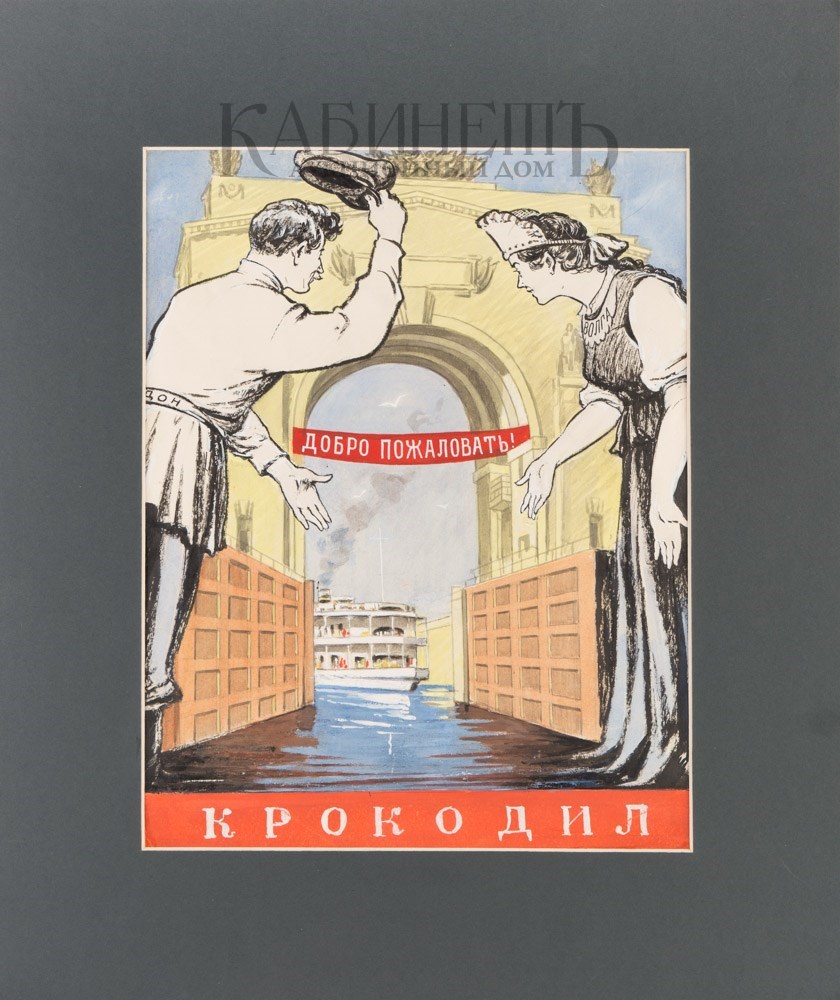 Коновалов Виктор Яковлевич (1909–1995) Открытие канала. Эскиз обложки журнала «Крокодил» № 16.