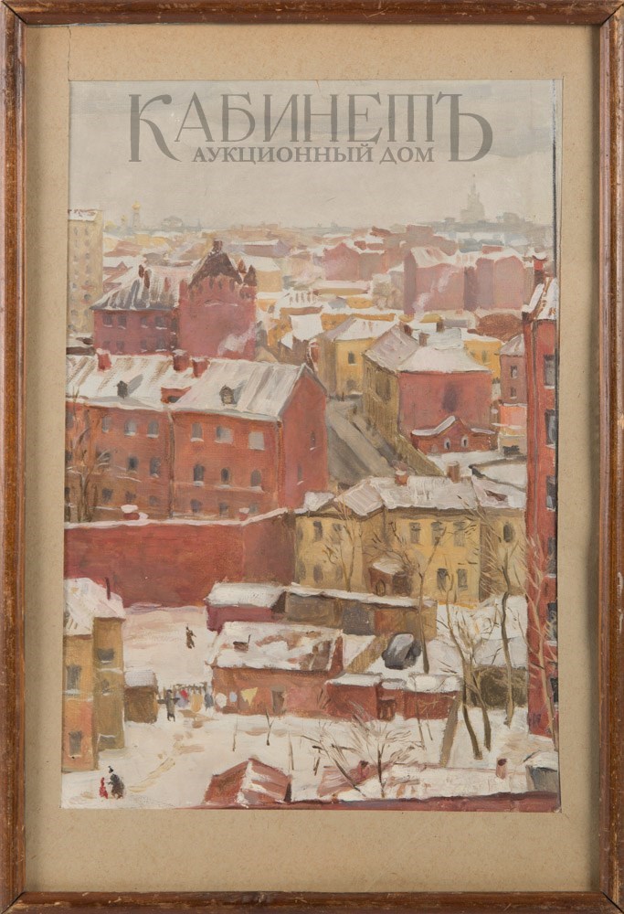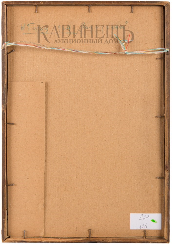 На оборотной стороне в верхней части графитным карандашом надпись: «Ника Гольц 1954 г. 31 х 21 масло/ «Из окна».