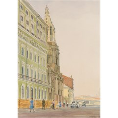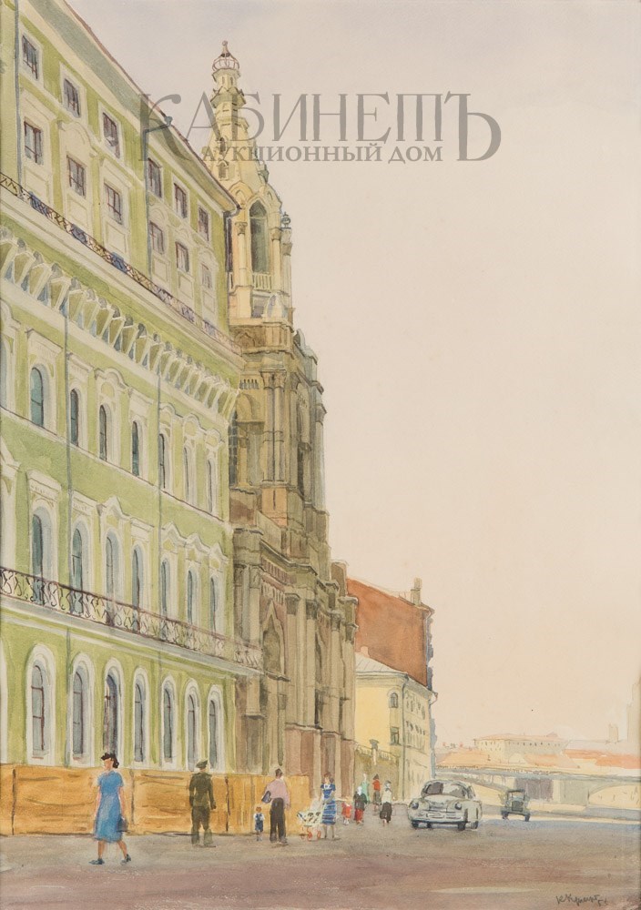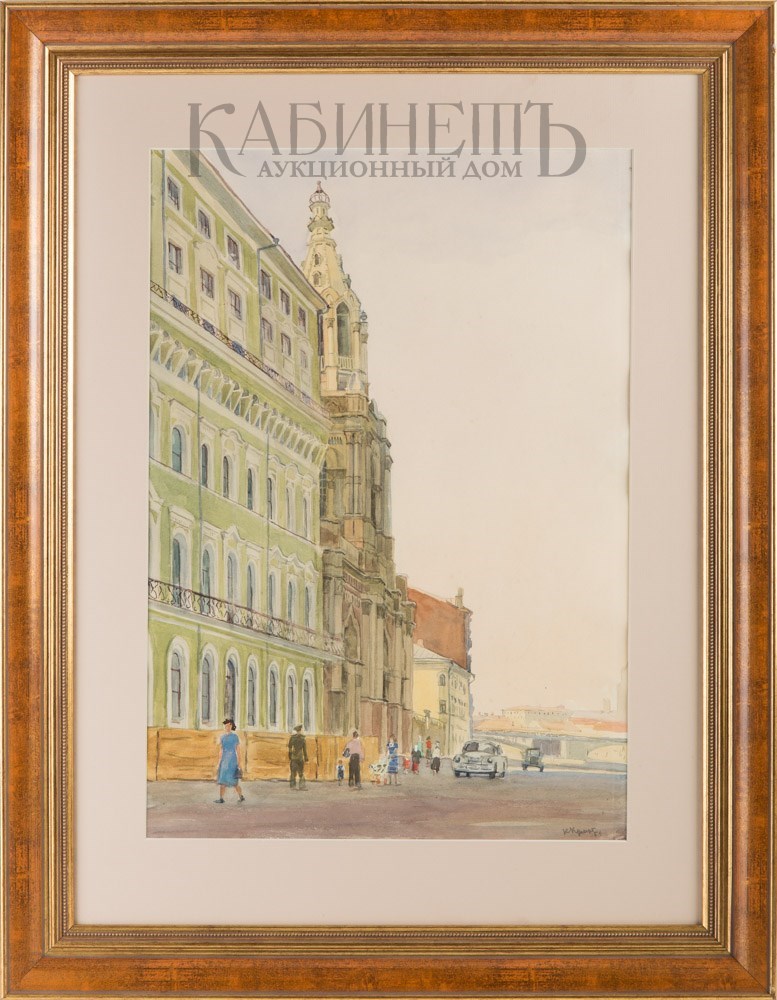 Справа внизу подпись и дата: «ККупеции/ 55». На оборотной стороне справа внизу графитным карандашом надпись: «К Купецио/ Софийская набережная/ 1955».