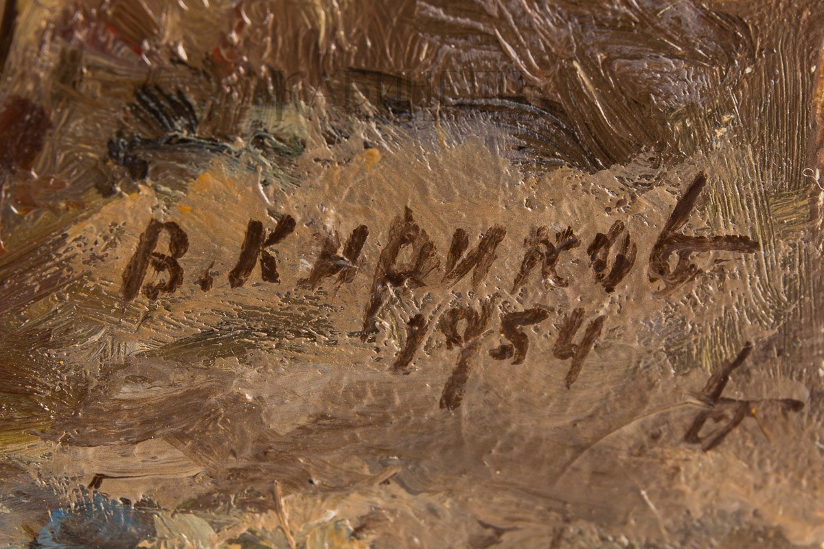 Справа внизу подпись и дата: «В. Кириков/ 1954» и подпись.