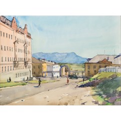 На оборотной стороне сверху слева надпись: «С. Боим/ Улица в Норильске/ (серия «По Енисею») 1966 г».