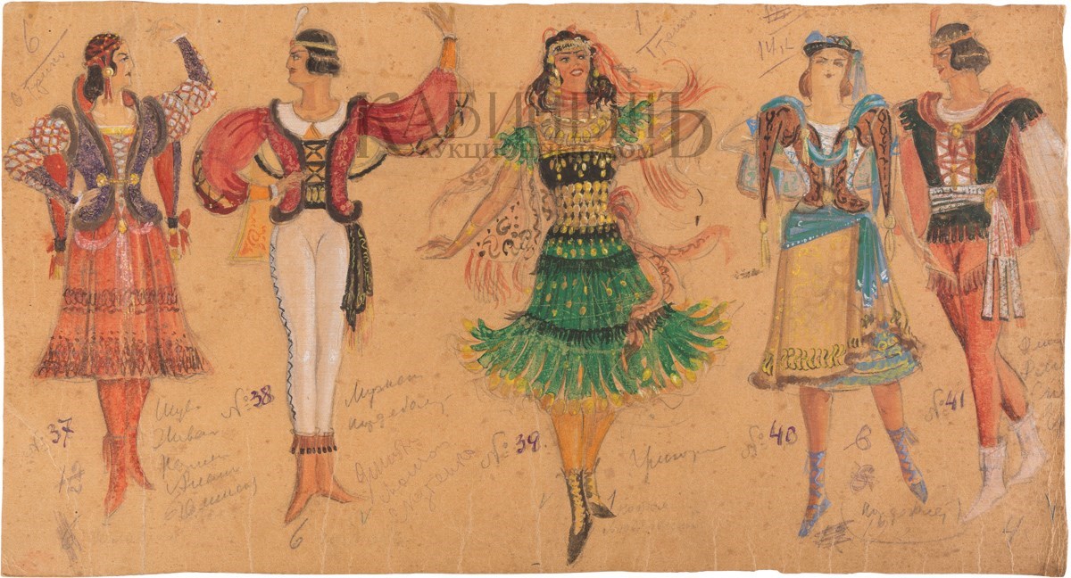 Мазанов Анатолий Михайлович (1909–1969) – театральный художник, актер. Учился в школе живописи и скульптуры у М. Сарьяна, Б. Риха, в драматической студии Донской филармонии. С 1929 г. занимался декоративно-оформительской работой, создавал эскизы декораций, костюмов, грима. С 1935 г. работал в Горьковском театре оперы и балета им. А.С. Пушкина, где оформил более ста спектаклей. Сотрудничал с Академическим Большим Театром (1946 г., Г.Н. Римский-Корсаков, «Майская ночь»), с Ленинградским драматическим театром им. Ленсовета, с Ленинградским Академическим Малым оперным театром, с Челябинским театром оперы и балета и другими. Заслуженный деятель искусств РСФСР.