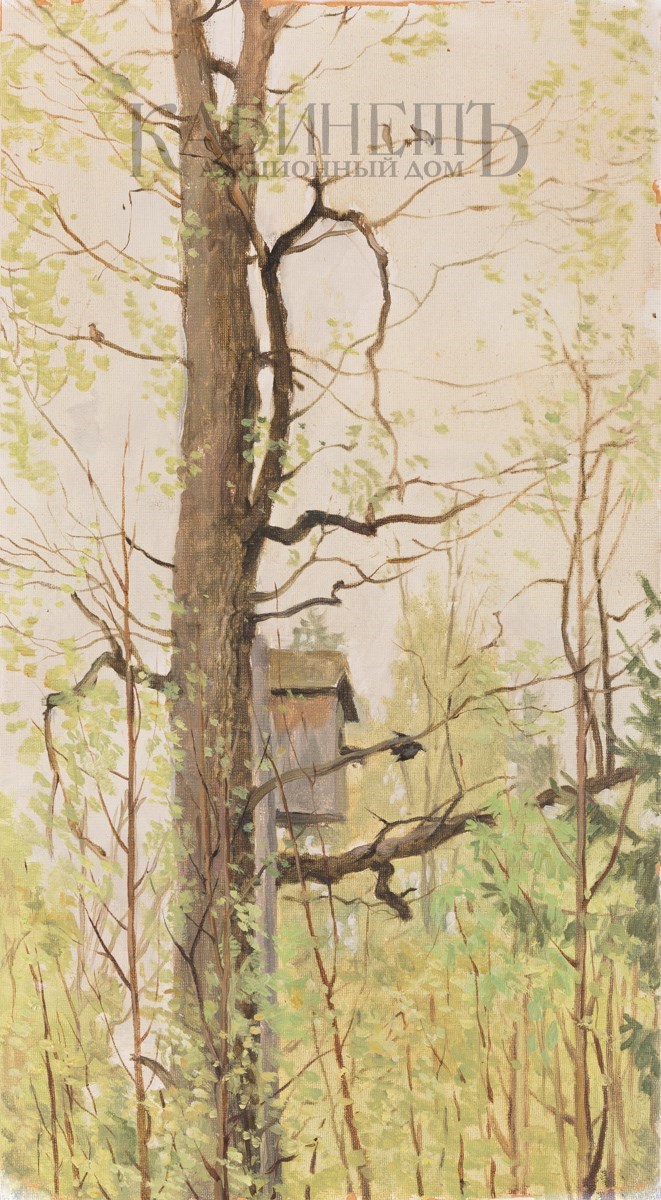 На оборотной стороне вдоль верхней кромки графитным карандашом надпись: «Н. Гольц 1948 г. Дача. Н.И.Л.».