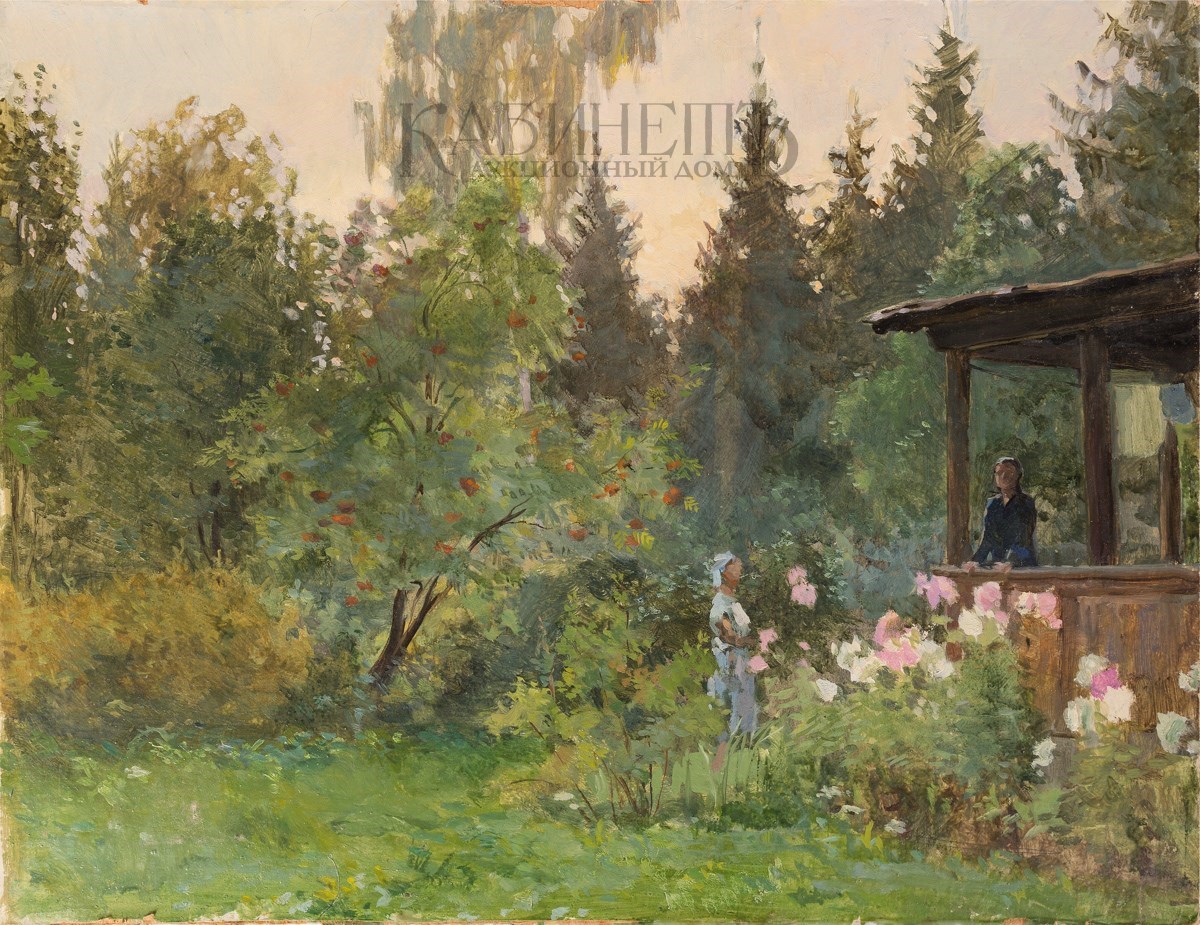 На оборотной стороне справа вверху надпись: «Н. Гольц. 1949 г./ «Дача. в Н.и.л.».