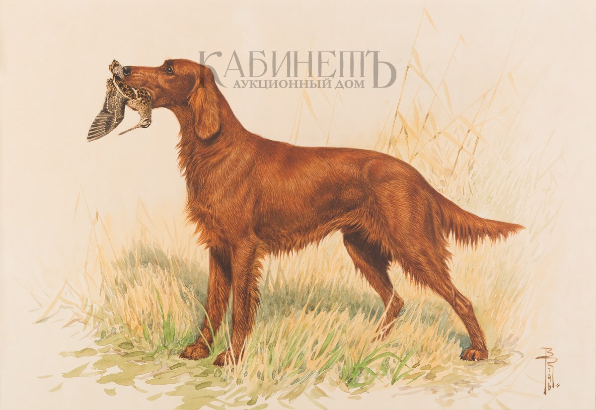 Рябушин Борис (Boris Riab) (1898–1975) Ирландский сеттер с вальдшнепом