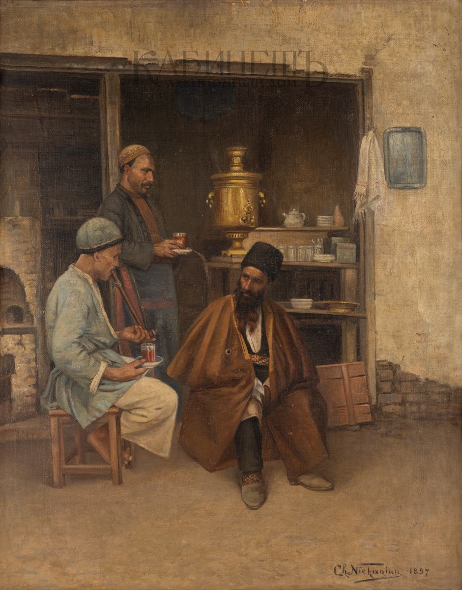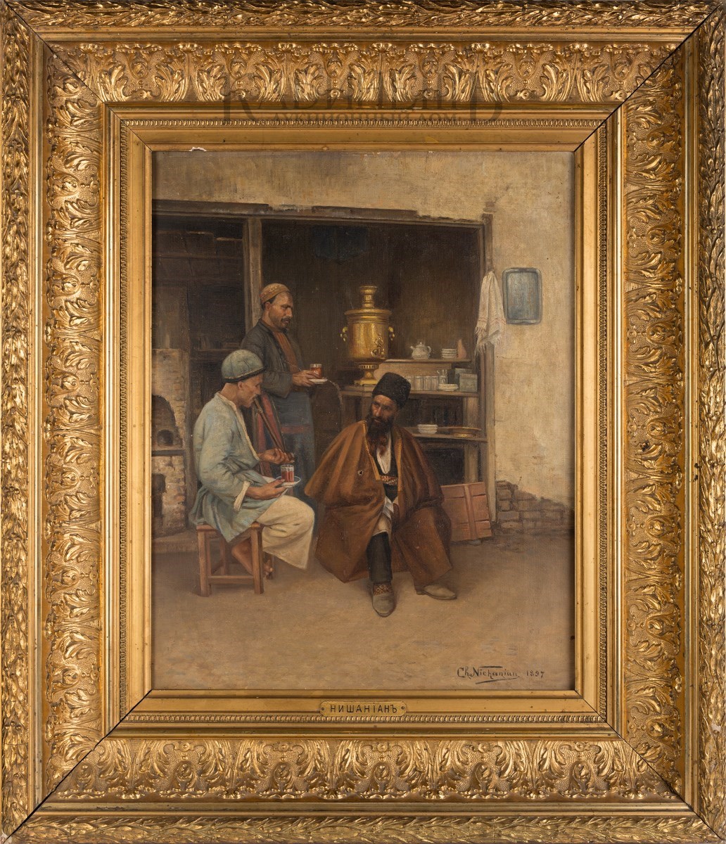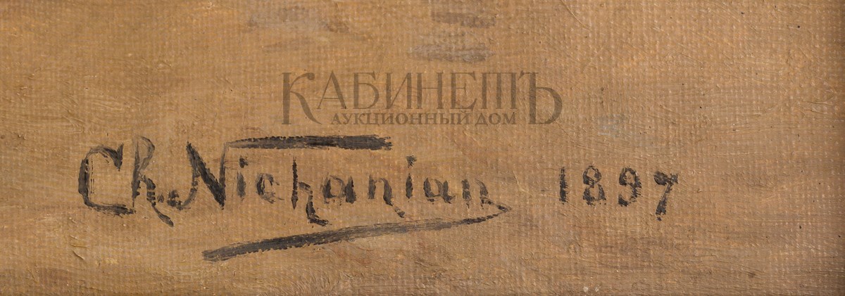 Справа внизу подпись и дата: «Ch. Nichanian 1897». Оформлена в старинную золоченую деревянную раму.
