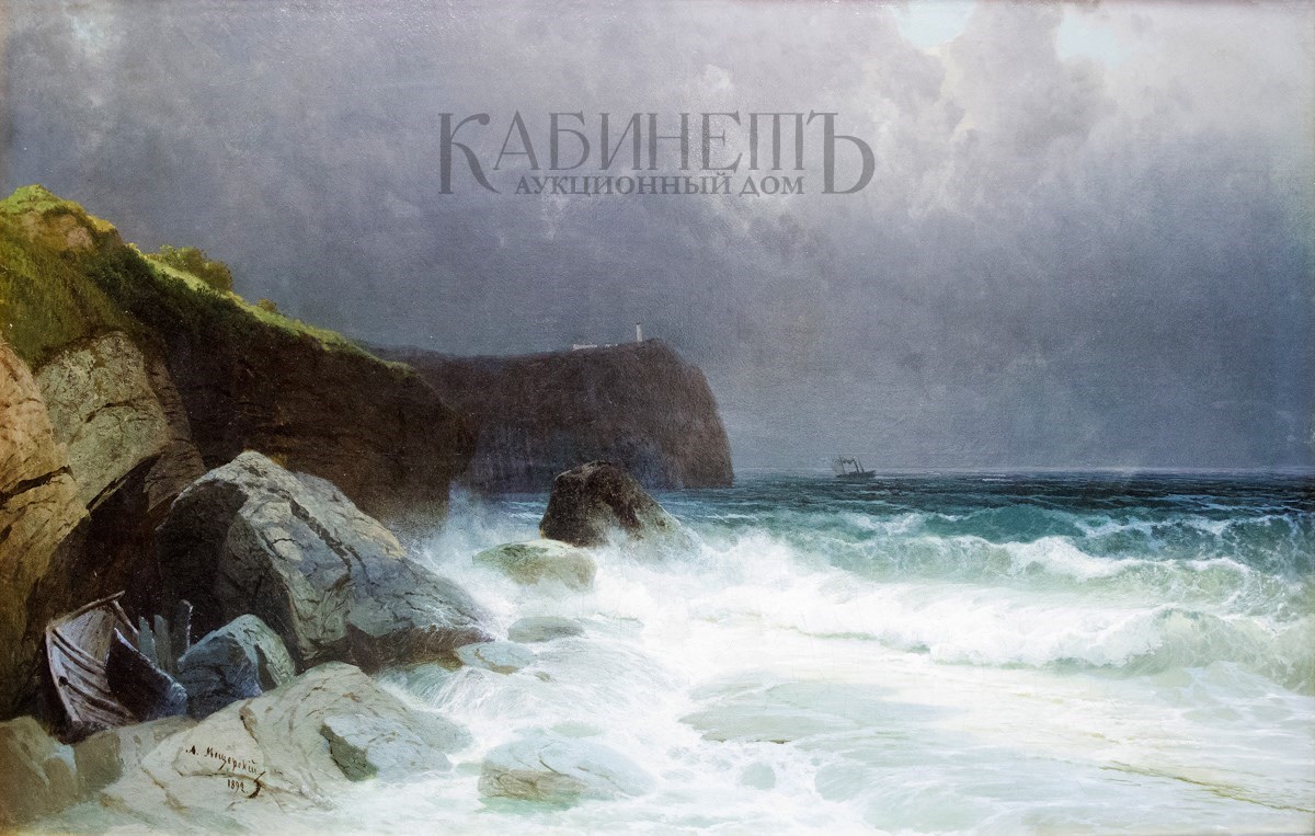 Мещерский Арсений Иванович (1834–1902) Морской прибой. Токлинский маяк на берегу Керченского пролива.