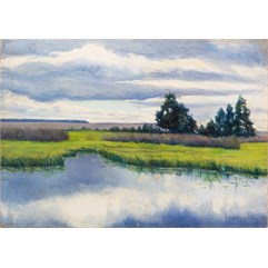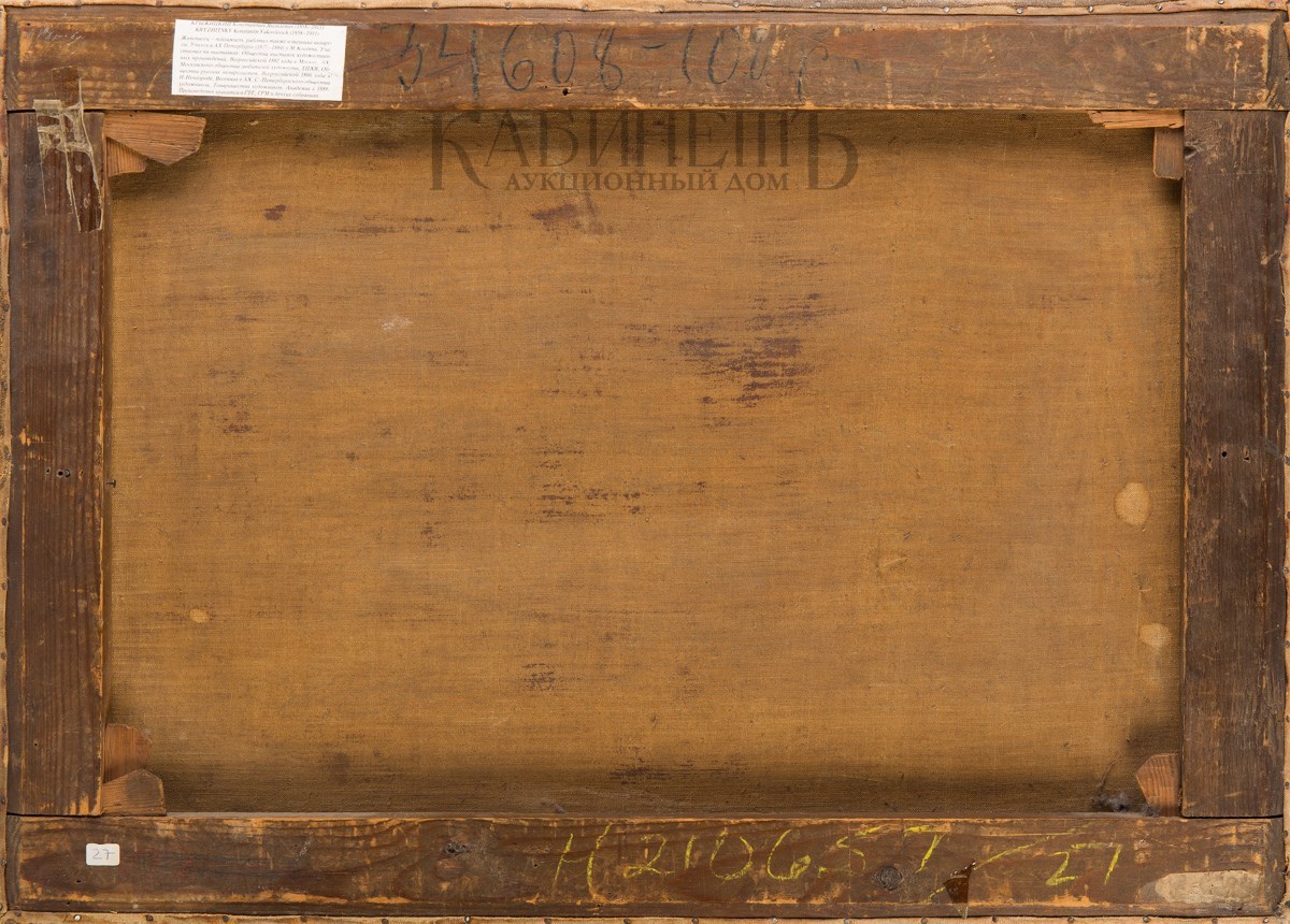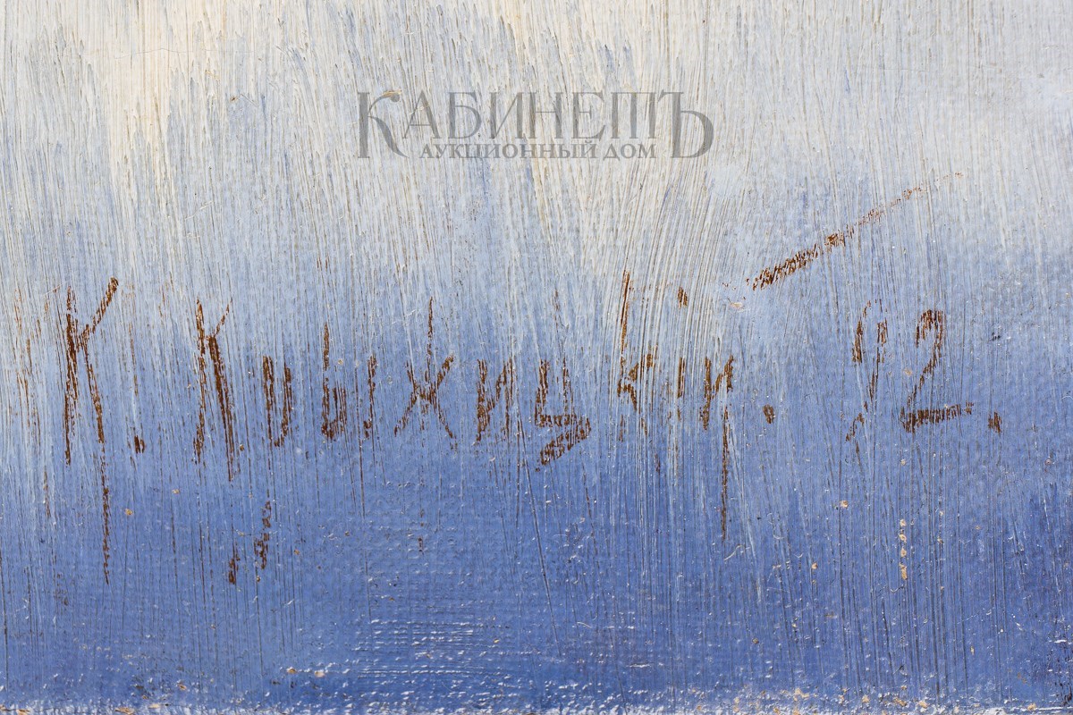 Крыжицкий Константин Яковлевич (1858–1911) – живописец-пейзажист. Учился в Киеве, в Рисовальной школе Н.И. Мурашко, в ИАХ (1877–1885) у М. Клодта. Участвовал в весенних выставках ИАХ, Общества выставок художественных произведений (1876–1883), Общества русских акварелистов (1880). Академик ИАХ с 1889 г. Член-учредитель Санкт-Петербургского Общества художников, действительный член и экспонент ТПХВ. Один из организаторов (с 1908 – председатель) Общества художников им. А.И. Куинджи. Член общества «Мюссаровские понедельники» (1909–1910). В память художника в 1912 г. было организовано Общество имени К.Я. Крыжицкого, существовавшее до 1917 г. Работы художника находятся в ГТГ, ГРМ, ХМ Иваново, Рязани, Казани, Ульяновска, Киева, Одессы.