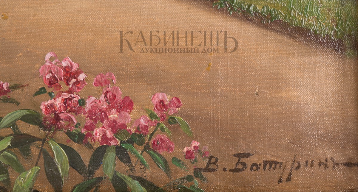 Батурин Виктор Павлович (1863–1938) – русский художник. Учился в МУЖВЗ. Участвовал в ТПВХ (в 1891, 1892 и 1907). Участвовал в выставках Петербургского общества художников, член общества с 1910 г. С выставки картин Петербургского общества его картина «Сад цветет» была куплена для Зимнего дворца. В 1888–1890 гг. работал художником-декоратором Большого театра в Москве. Картины экспонировались на Всероссийской выставке в Нижнем Новгороде (1896), на Всемирной выставке в Сан-Луи (1904), на выставке в Берлине. Работы хранятся в ГТГ, Самарском ХМ и др.