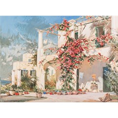 Слева внизу авторская подпись: «C. Westchiloff», cправа внизу авторское название: «Capri». На оборотной стороне слева вверху графитным карандашом надпись: «Roses de Bouganville».