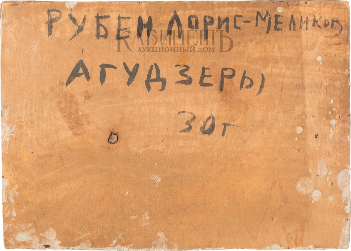 Справа внизу процарапана подпись: «Р. Лорис М». На оборотной стороне в верхней части надпись: «РУ БЕН Лорис-Меликов/ АГУ ДЗЕРЫ (Сухум)/ 30 г».