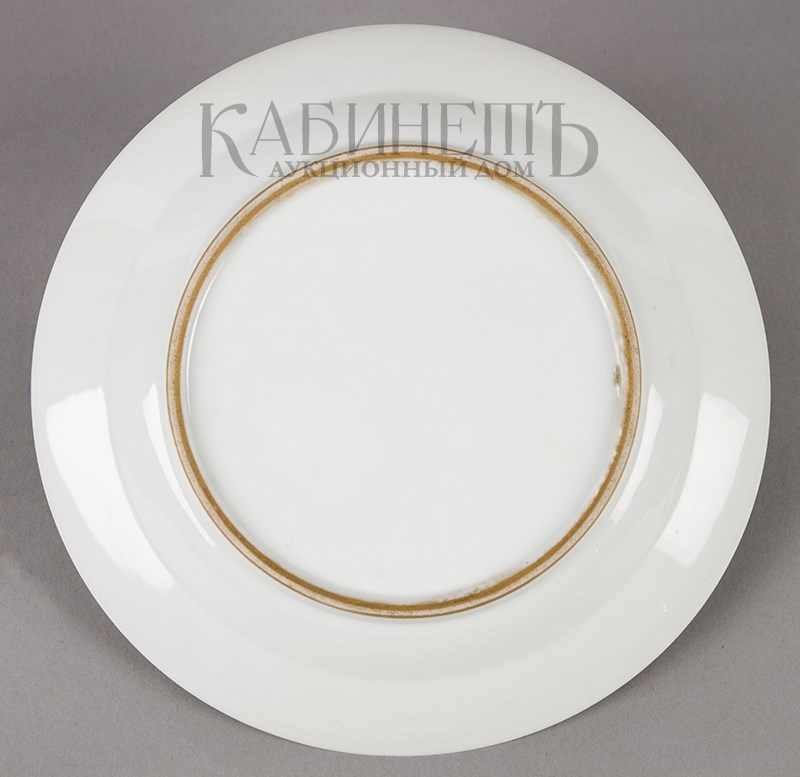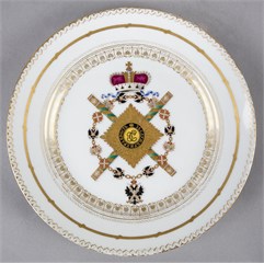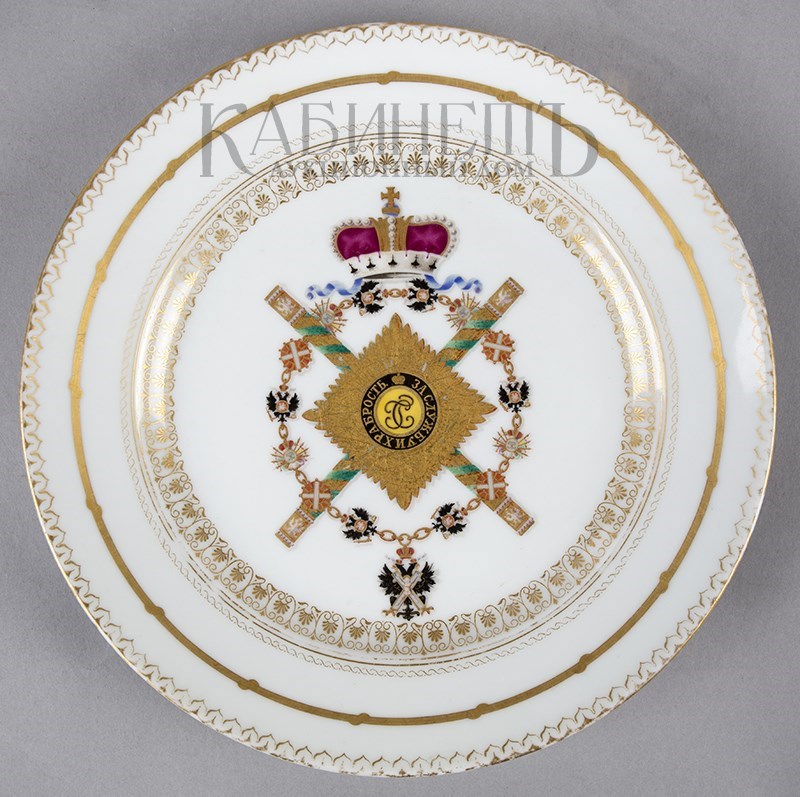 Тарелка десертная с изображением цепи и знаков ордена Святого Андрея Первозванного, Звезды ордена Святого Георгия Победоносца и маршальскими жезлами