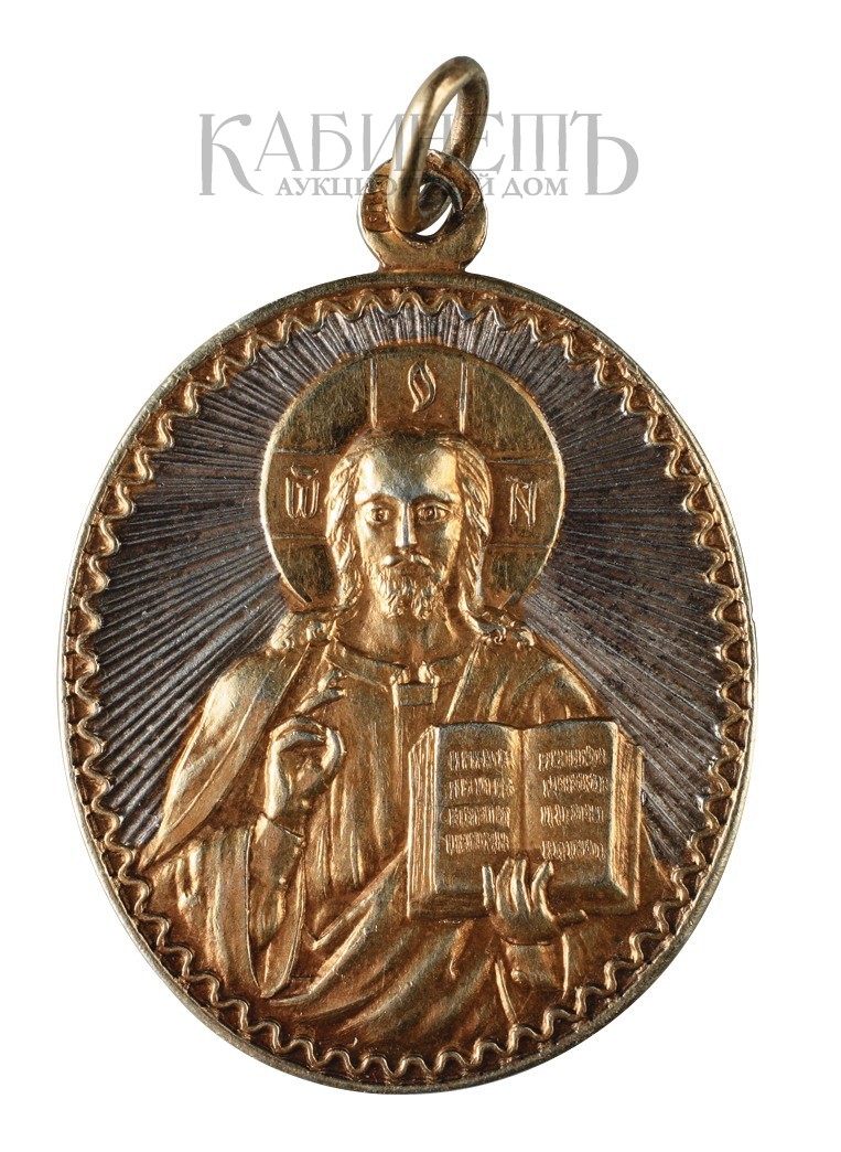 Архив аукциона №4 (12) Нательный образок «Господь Вседержитель» с гравированной надписью: «Благословение от Его Императорского Величества Великого Князя Михаила Александровича. 1909»