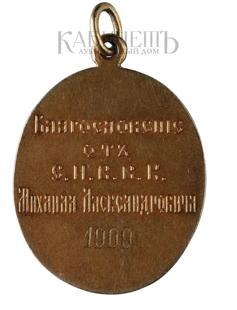 (1) Нательный образок «Господь Вседержитель» с гравированной надписью: «Благословение от Его Императорского Величества Великого Князя Михаила Александровича. 1909»
