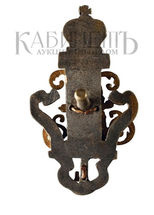 Российская империя, частная мастерская1914-1917 гг.Размер 53 х 30 ммВес 21,9 гБронза, серебрение, золочение