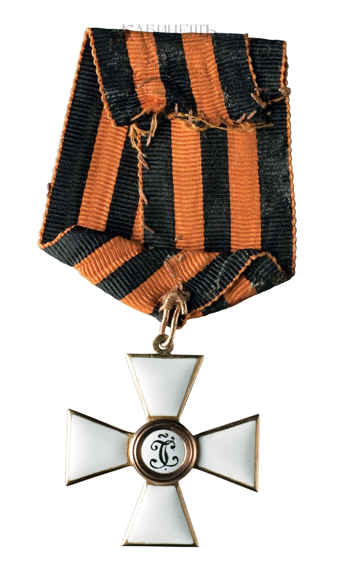 Знак ордена Святого Георгия 4-й степени на оригинальной ленте