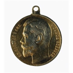 26 мая 1915 г. император Николай II утвердил Положение Совета министров о снижении пробы в Георгиевских крестах и медалях. Проба в золотых медалях 1-й и 2-й степеней была снижена до 56 (583 метрической). На медалях, изготовленных из этого сплава, стали помещать особый знак (клеймо) в виде женской головки в круге.