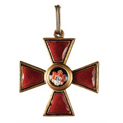 Клейма: на оборотной стороне на нижнем луче под эмалью – «К», именник мастера «ДО».