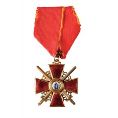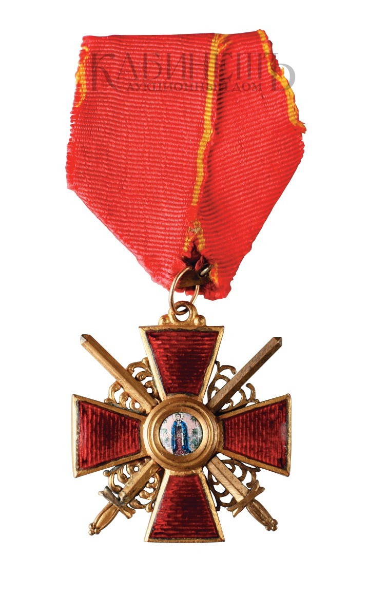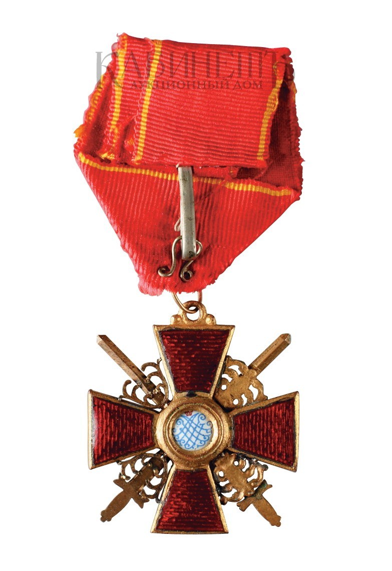 Знак ордена Святой Анны 3-й степени с мечами на оригинальной ленте