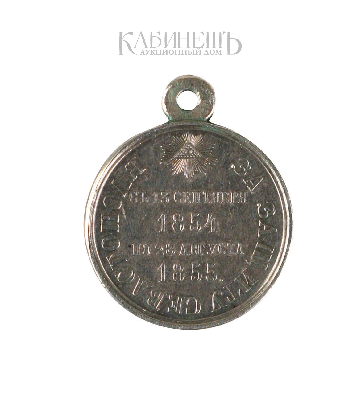 ГлавнаяАукционыПредметы военной истории. Ордена, медали, знаки Российской империи. Медаль «За защиту Севастополя с 13 сентября 1854 по 28 августа 1855». Санкт-Петербургский монетный двор. Вторая половина XIX в.