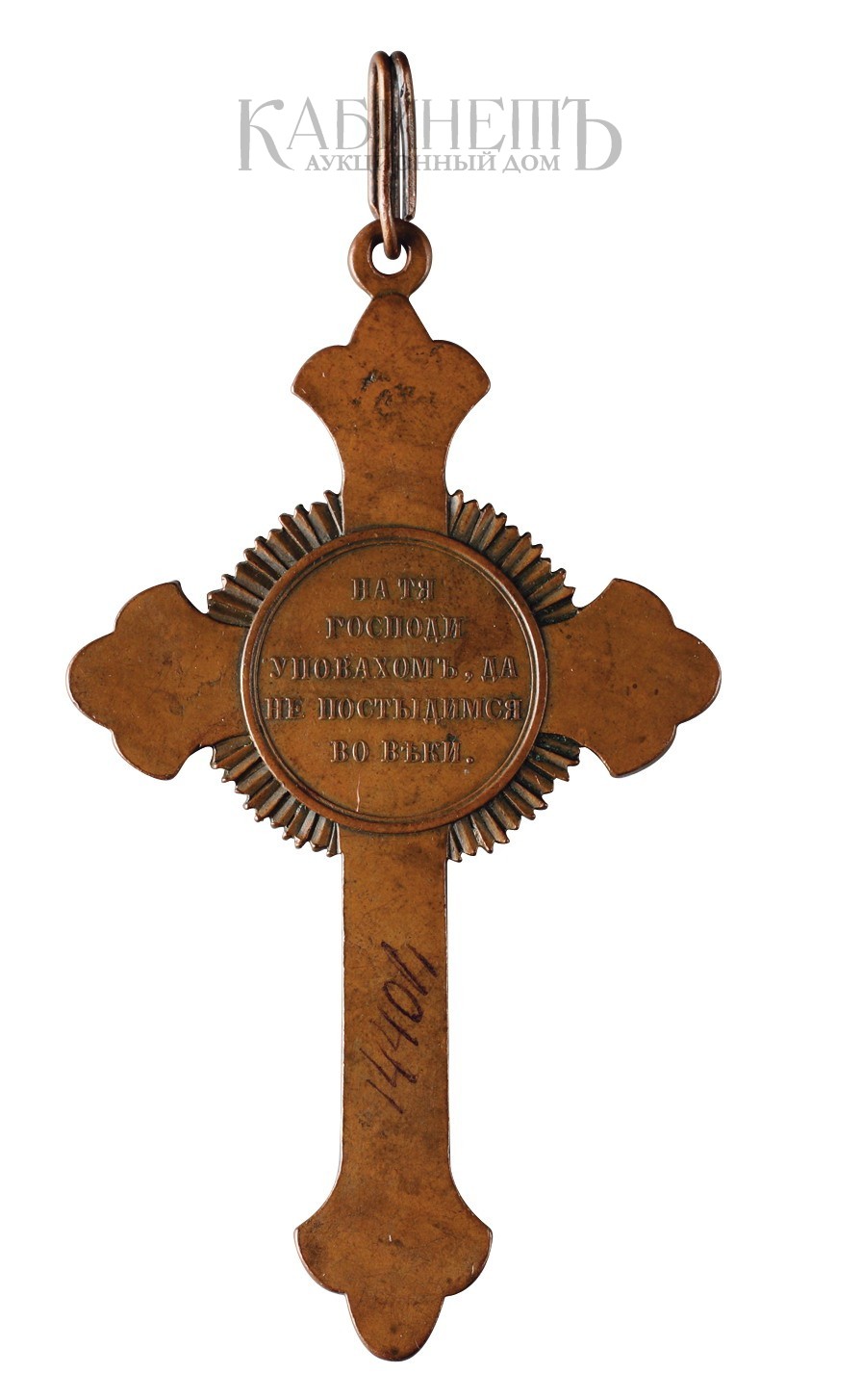 Подобным крестом были награждены все священники, находившиеся на театре военных действий во время Крымской войны 1853-1855 гг. Крест носился на груди, на Владимирской ленте.