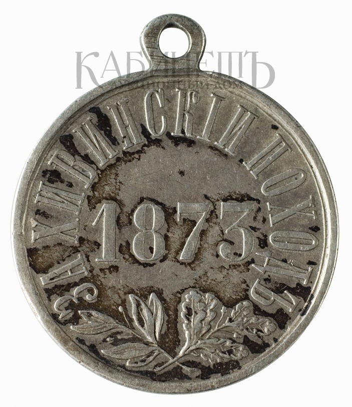 Учреждена 22 июля 1873 г. Медалью награждали: всех генералов, офицеров, строевых и нестроевых нижних чинов, священников, медиков, чиновников военного и гражданского ведомств, волонтеров и джигитов, находившихся в составе войск Туркестанского, Оренбургского, Мангышлакского, Красноводского отрядов и Аральской флотилии в 1873 г. и принимавших участие в Хивинском походе. Было отчеканено 14 950 медалей.