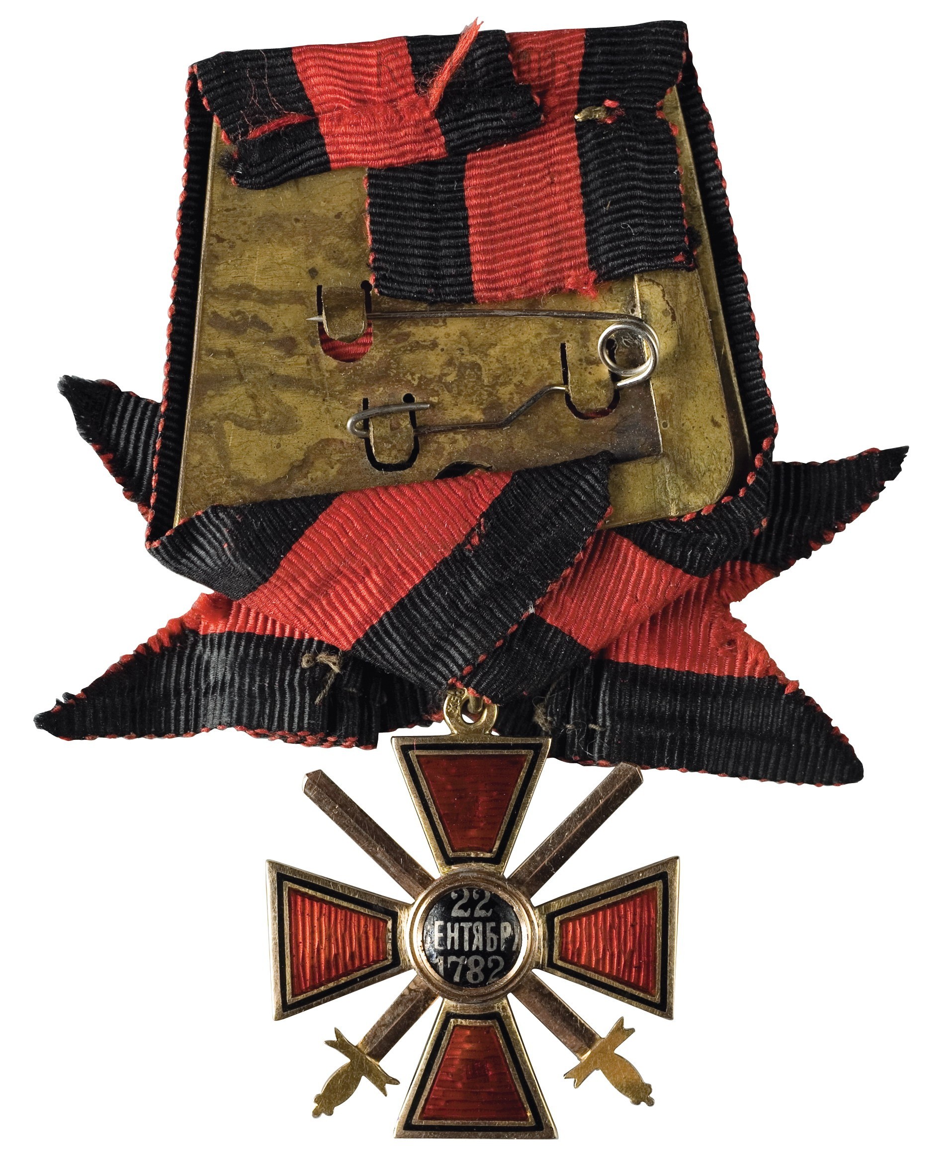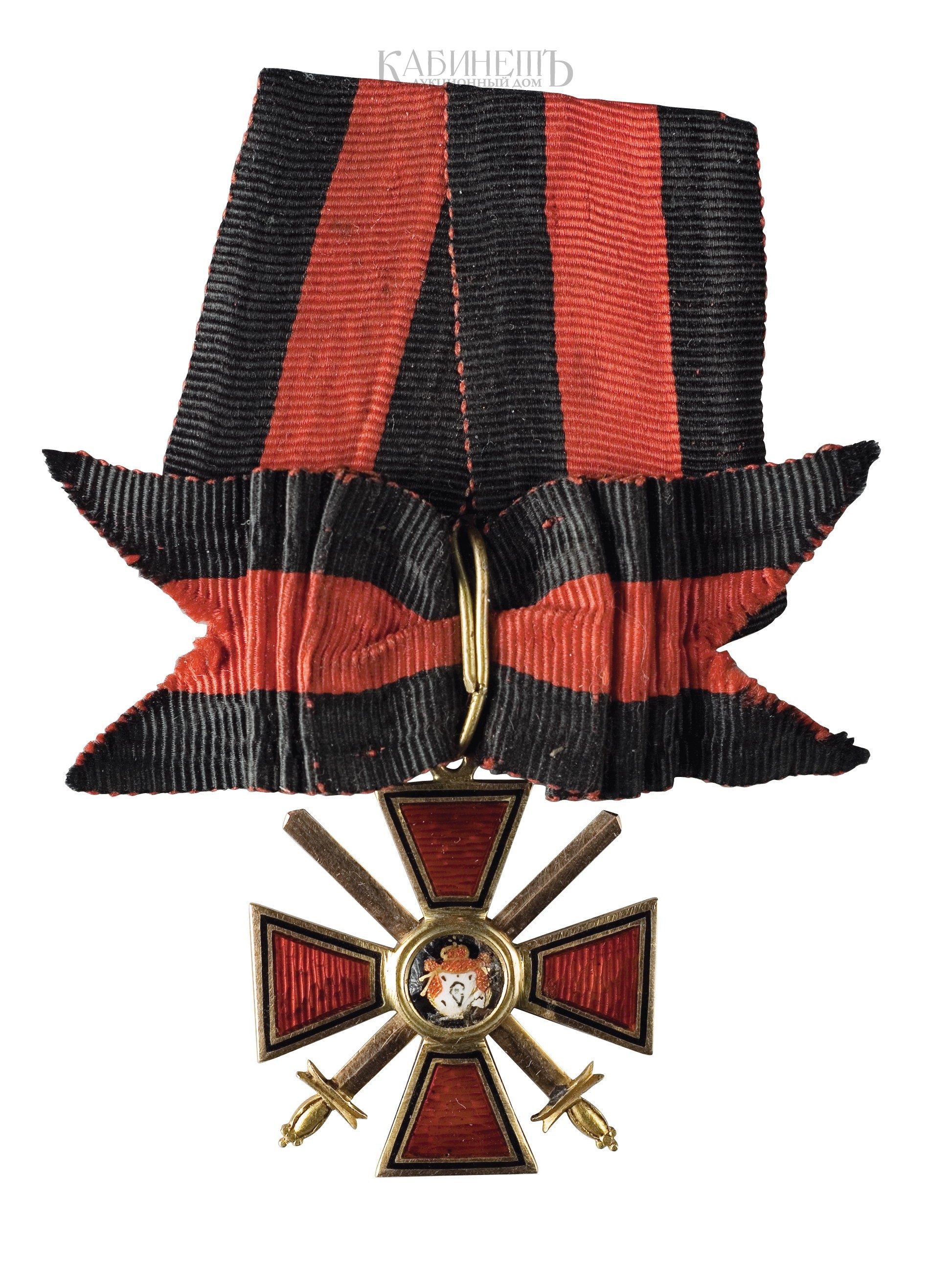 Знак ордена Святого Владимира 4-й степени с мечами на оригинальной колодке