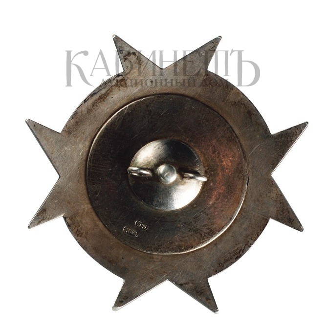 Клейма: на оборотной стороне – 84-й пробы с гербом Санкт-Петербурга, именник «ФИ»; на шайбе – 84-й пробы с гербом Санкт-Петербурга, именник «ФИ».