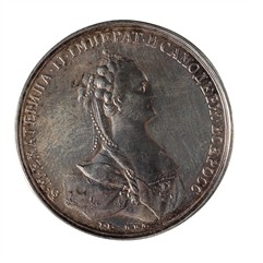 Новодел XIX в. с копии С. Ю. Юдина с работы В. АлексееваСанкт-Петербургский монетный дворКонец XIX в.Диаметр 41 ммВес 24,1 гСеребро